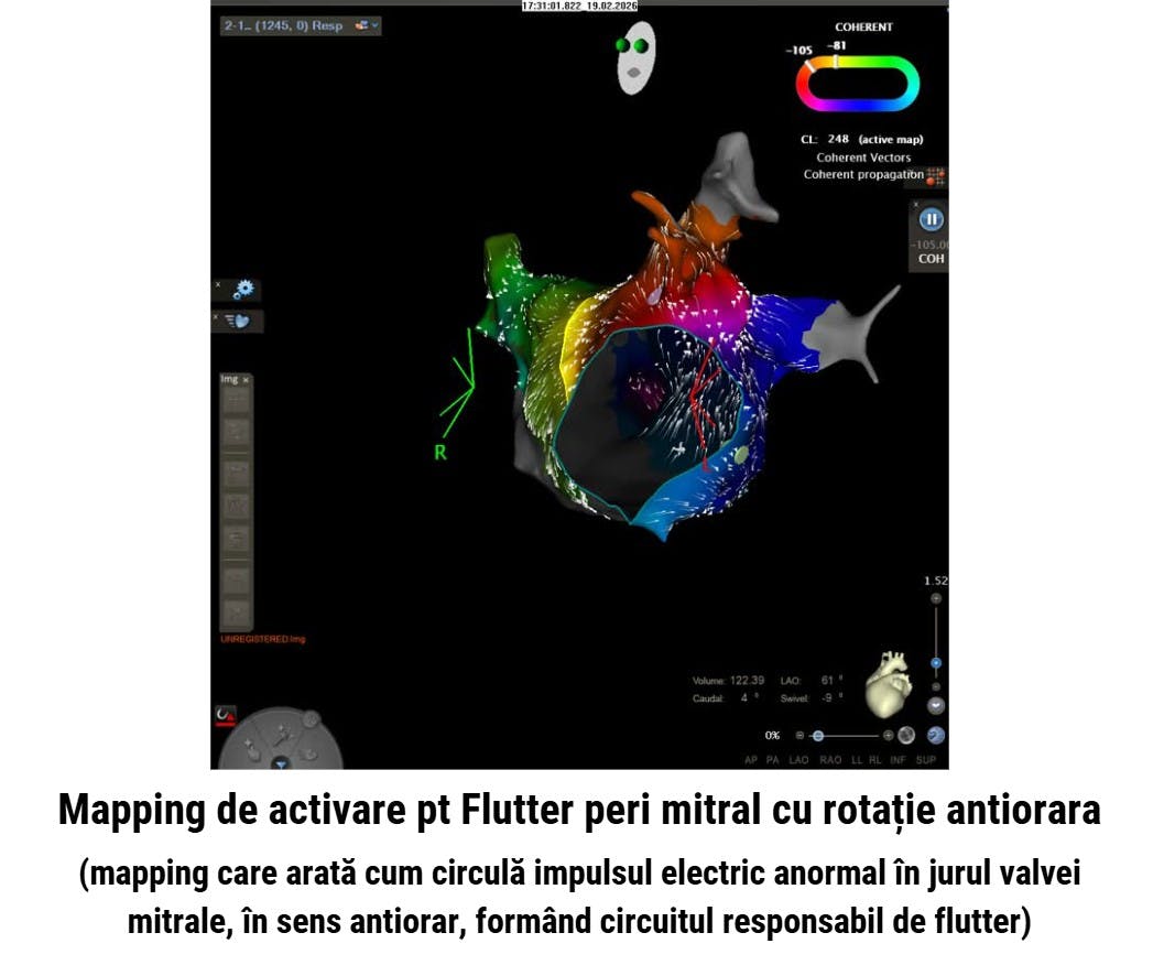 Procedura a fost realizată de Dr. Marius Andronache, cu implicarea Dr. Dan Deleanu și cu suport imagistic intraprocedural pentru puncția transeptală oferit de Dr. Silvia Deaconu.
