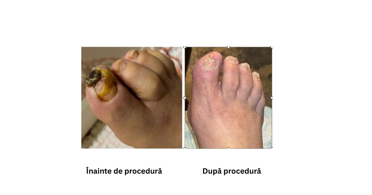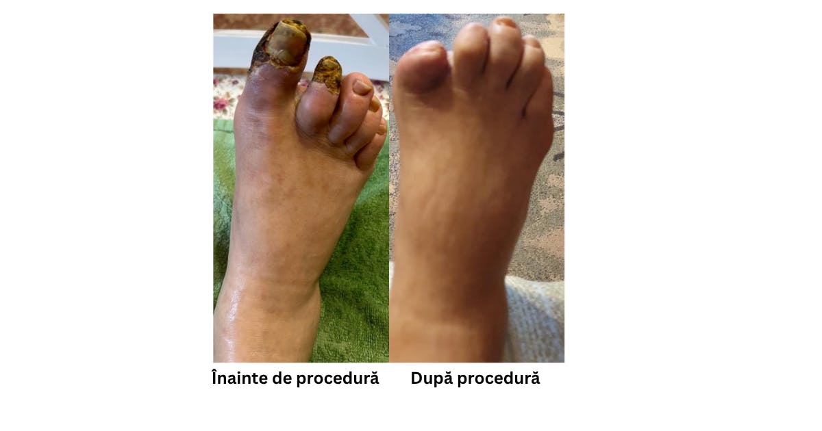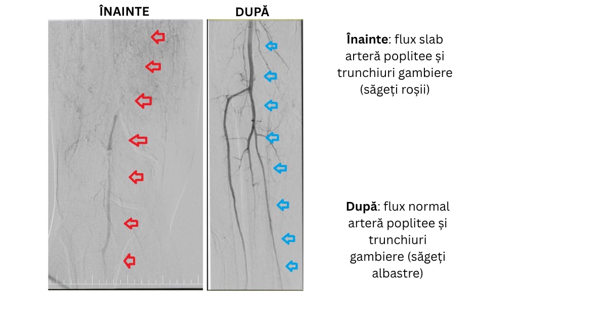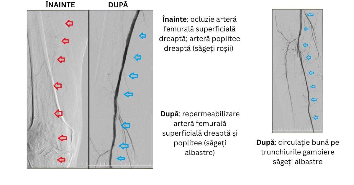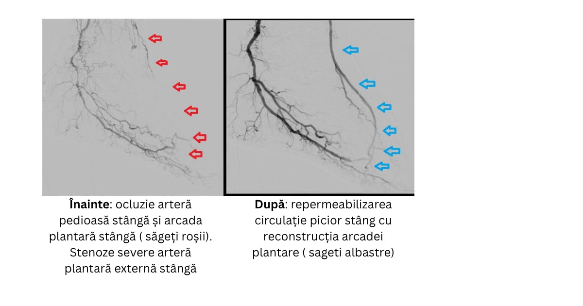 proceduri microinvazive de revascularizare periferică, care au redeschis circulația și au evitat amputația.