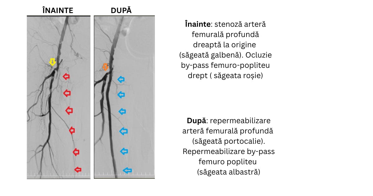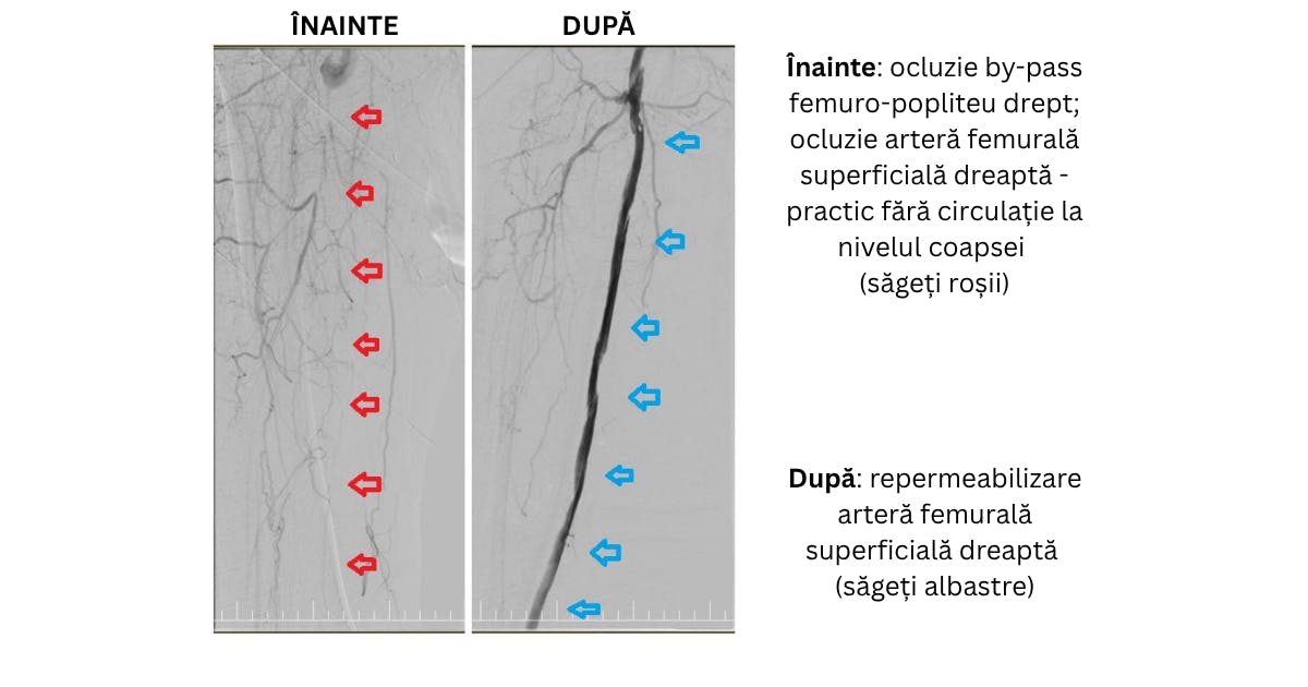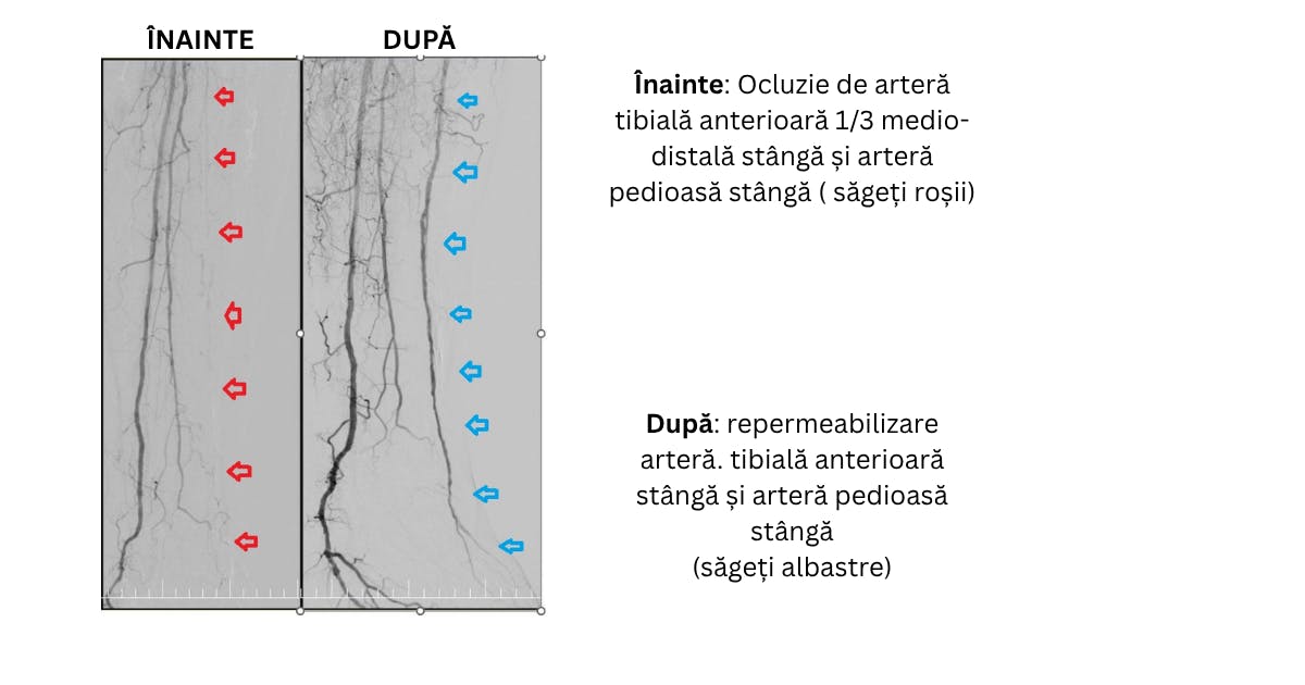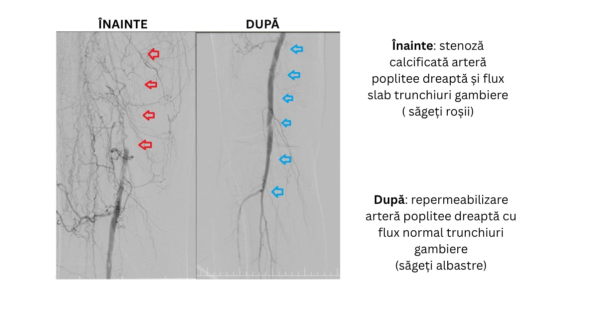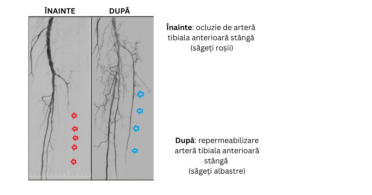 proceduri microinvazive de revascularizare periferică, care au redeschis circulația și au evitat amputația.