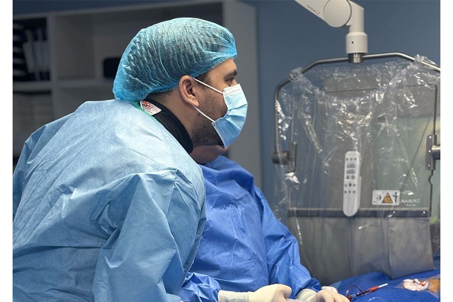 În urma evaluării paraclinice și ecocardiografice, realizate de Dr. Adnan Mustafa, s-a decis efectuarea unei intervenții de revascularizare intervențională complexă, cu utilizarea tehnicii de rotablație pentru tratamentul leziunilor severe calcificate.